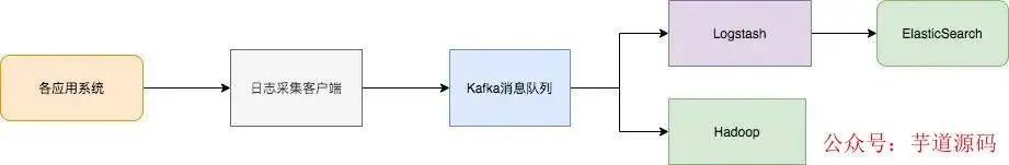 日志处理应用,如 Logstash,订阅并消费Kafka中的日志消息,最终供文件搜索服务检索日志,或者由 Kafka 将消息传递给 Hadoop 等其他大数据应用系统化存储与分析。