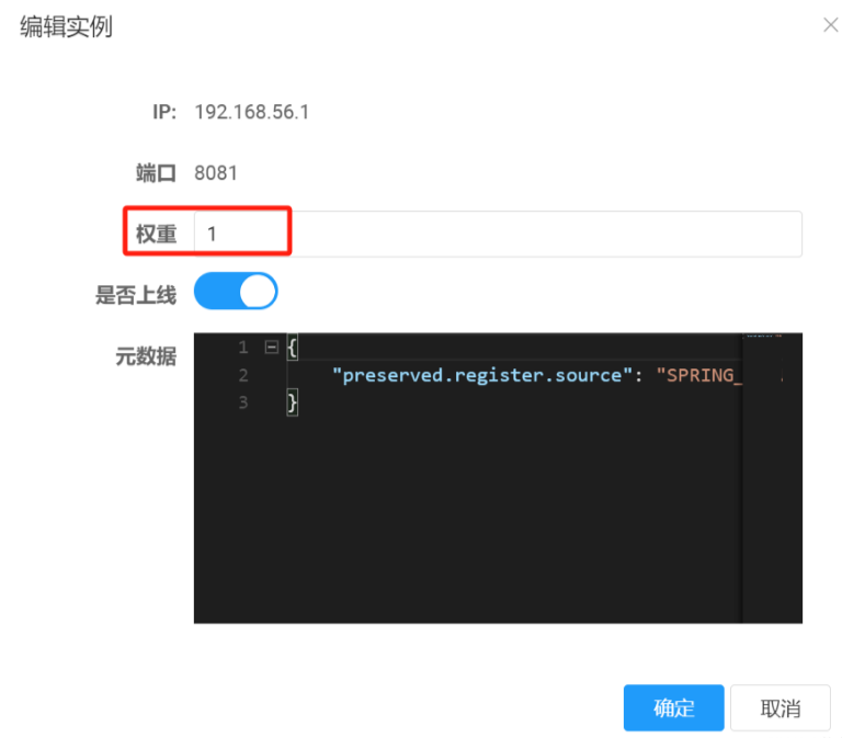 可以在nacos面板找到该实例信息,并实时配置实例的权重