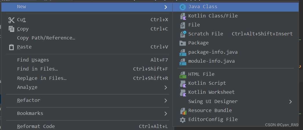 1>先像平时创建类一样正常点击New——>Java Class;如下图所示 :