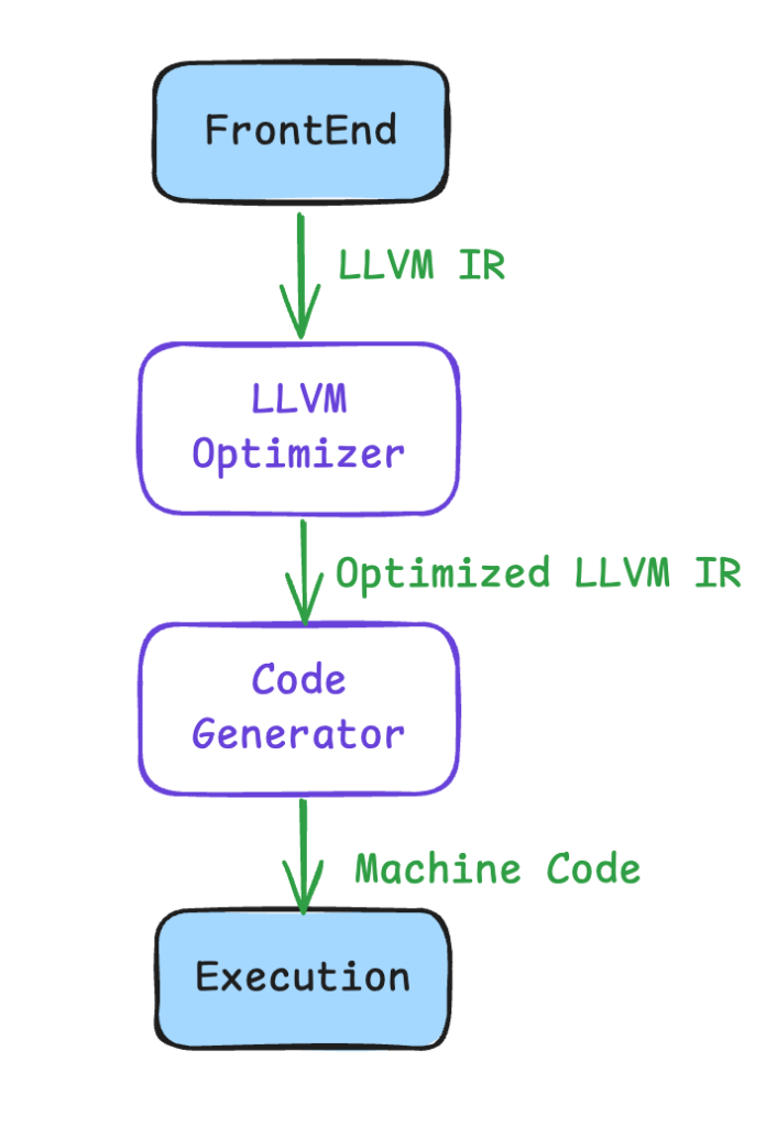 3. 通过LLVM的代码生成器:从LLVM IR生成真正的CPU指令,使程序最终可以运行