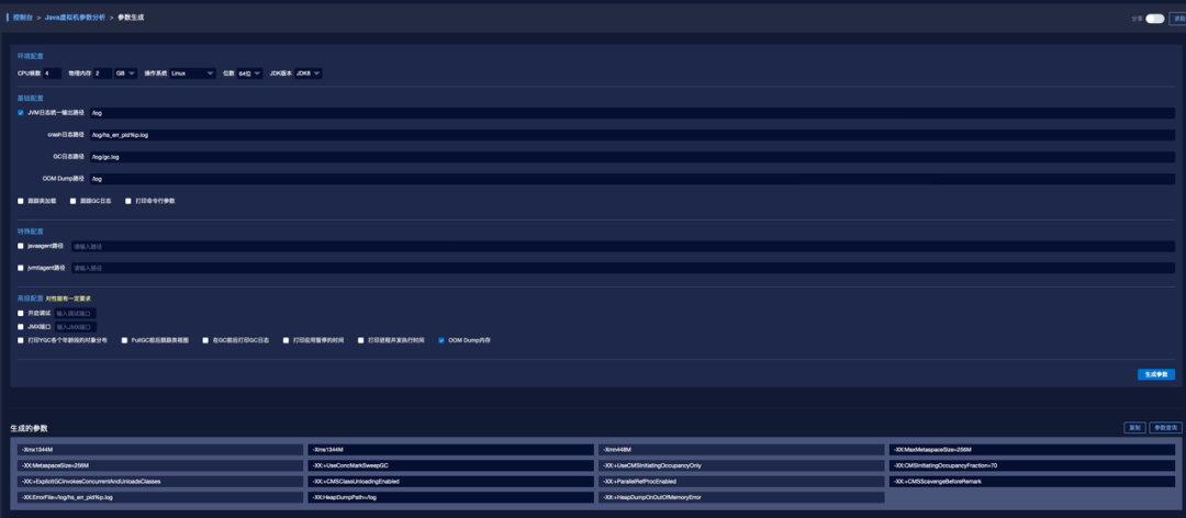 可以通过参数生成快速生成一个比较合理的参数配置