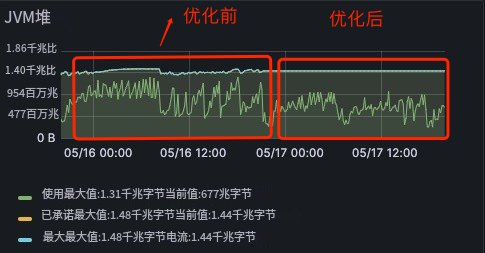 堆内存优化前后内存变化。