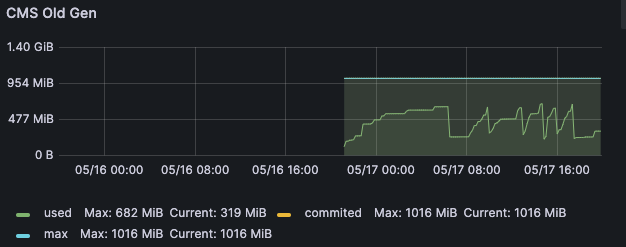 这导致新生代和老年代基本是在接近填满时进行 GC, 即上述我们扩大内存后仍然会频繁报内存使用率过高的情况。
