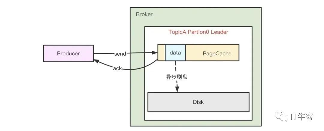由于消息是写入到 pageCache,单机场景,如果还没刷盘 Broker 就宕机了,那么 Producer 产生的这部分数据就可能丢失。为了解决单机故障可能带来的数据丢失问题,Kafka 为分区引入了副本机制。