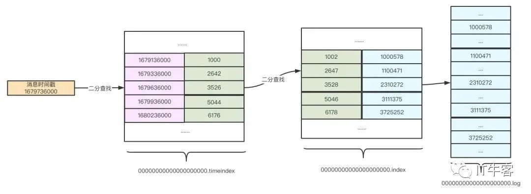 时间戳索引文件的检索与位移索引文件类似,如下快速检索消息示意图: