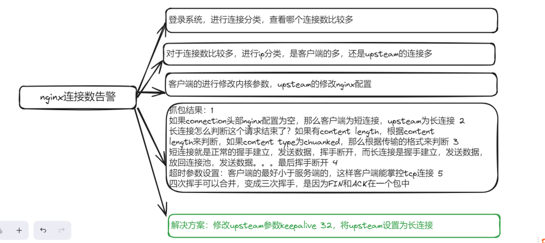 连接数过多,会消耗cpu,内存,文件句柄等资源,其实也还好,当解决不了的时候,你可以把连接数的阈值调高一点,或许10w才开始告警,或者30w才开始告警也行,只要cpu和内存不告警,其实也没那么紧急。