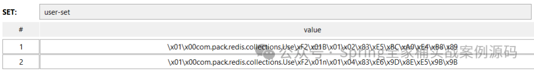 RSet<User> set = redisson.getSet("user-set");set.add(new User(1L, "张三", 33)) ;set.add(new User(2L, "李四", 55)) ;