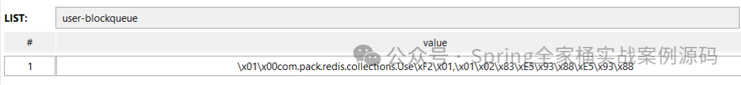 RBlockingQueue<User> queue = redisson.getBlockingQueue("user-blockqueue");queue.offer(new User(1L, "哈哈", 22)) ;// queue.offer(new User(2L, "嘿嘿", 33)) ;User u1 = queue.peek() ;User u2 = queue.poll() ;//这里会被阻塞,最多等待10s队列中有元素则直接返回User u3 = queue.poll(10, TimeUnit.SECONDS) ;