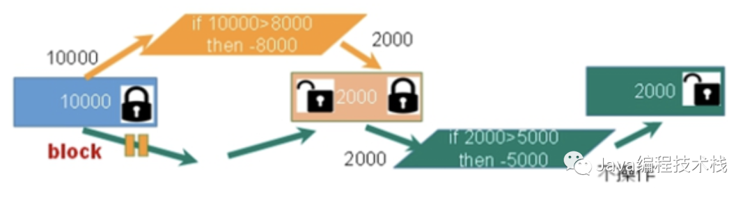 最终我们可以发现,总共金额是 10000,如果请求全部执行,那最后的金额变为 - 4000,很明显不合理。
