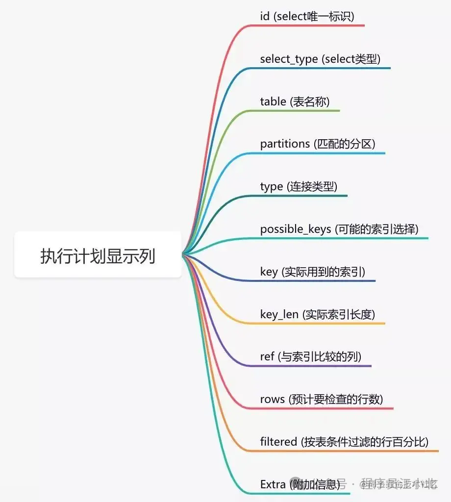 通过这几列可以判断索引使用情况,执行计划包含列的含义如下图所示: