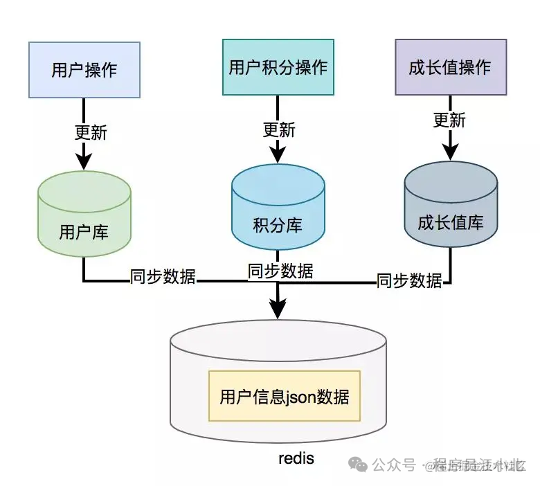用户信息、积分和成长值有更新的话,大部分情况下,会先更新到数据库,然后同步到redis。