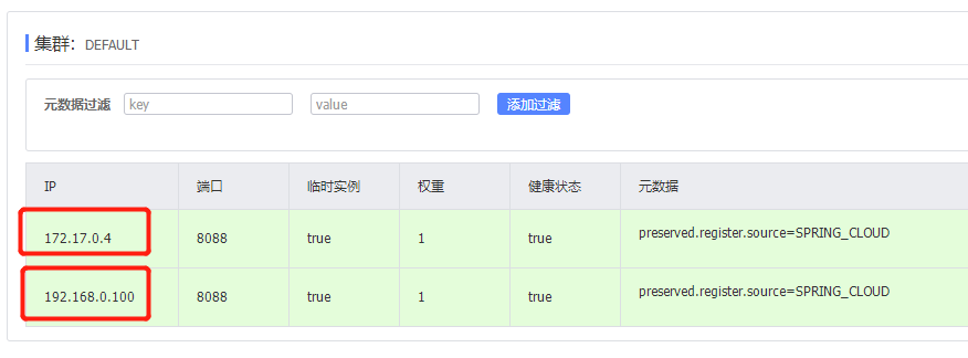 • 两个service都是通过宿主机的ip和port,把自己的信息注册到nacos上