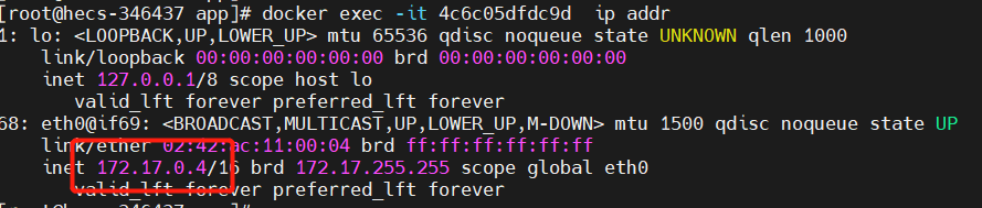 线上环境现在一般使用容器化部署,通常都是由流水线工具打成镜像然后扔到docker中运行,因此我们去看一下服务在docker容器内的ip: