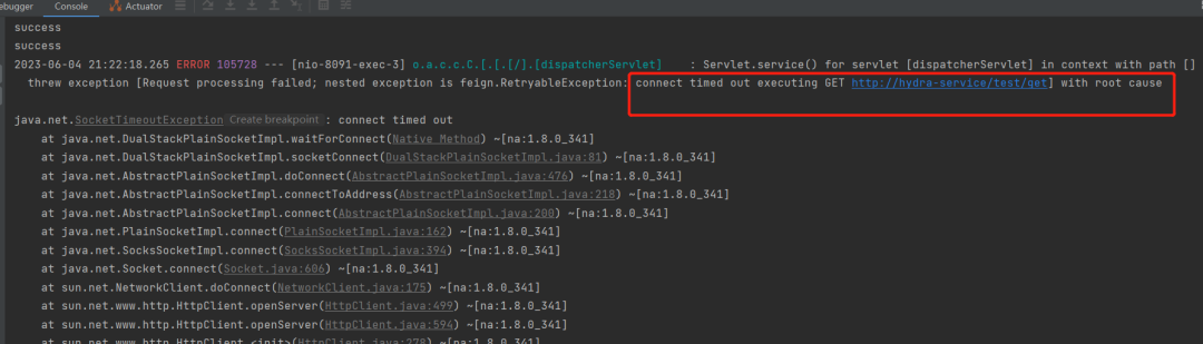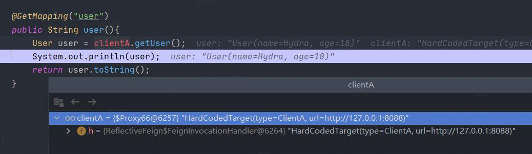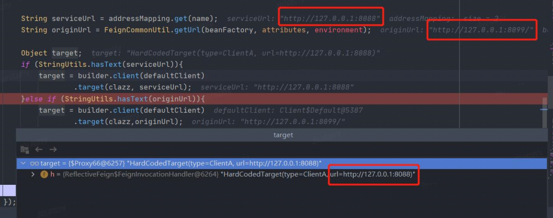 在替换url过程中添加一个断点,可以看到即使在注解中配置了url,也会优先被配置文件中的服务url覆盖: